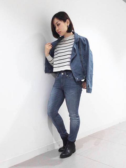 出典:https://pbs.twimg.com/ 王道のデニムonデニムコーデ。インはシンプルなボーダー柄で、決めすぎないところが今風です。