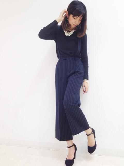 出典:https://pbs.twimg.com/ 黒とネイビーでまとめた上品な着こなし。パールのネックレスとパンプスを合わせてエレガントに。