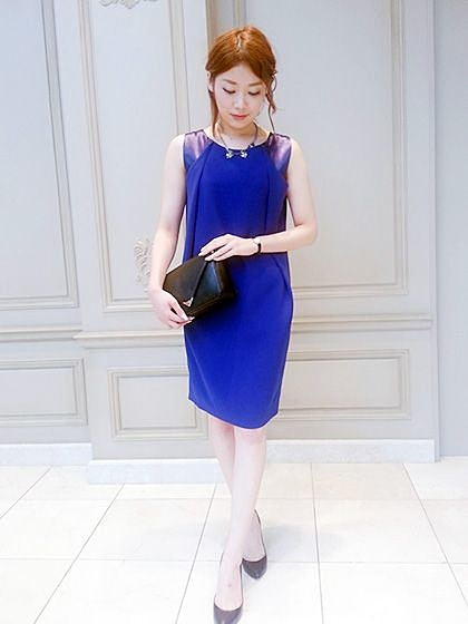 ぱっと目を引くブルーよりも、少しやわらかで女性らしい色なのもポイント。生地のゆれ感がやわらかで、涼しげな印象のドレスを選びましょう。
