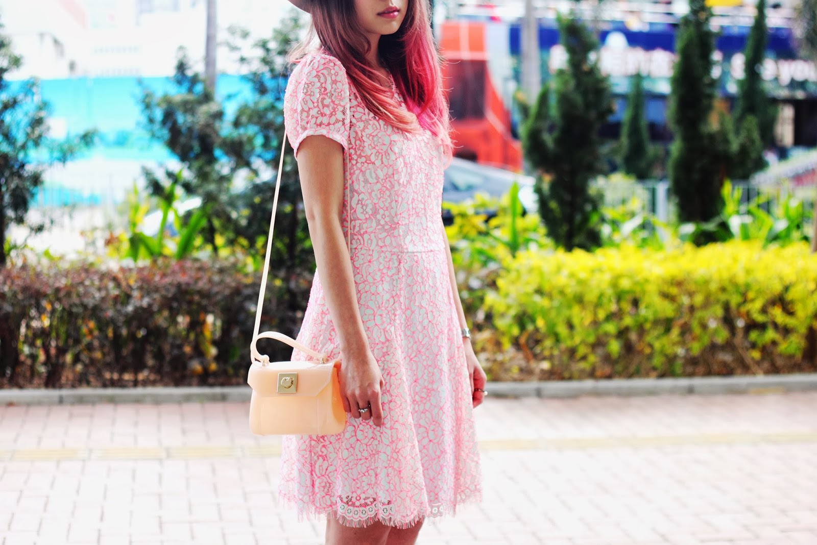 パステルカラーのキャンディバックのショルダーでガーリースタイル!