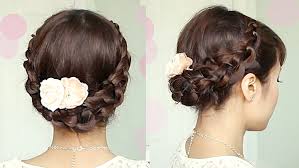 半分だけ編み込んだり、アップにして