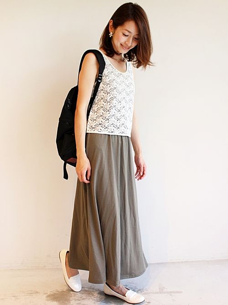 グレーマキシスカート×上品白トップスで女子力UP♥