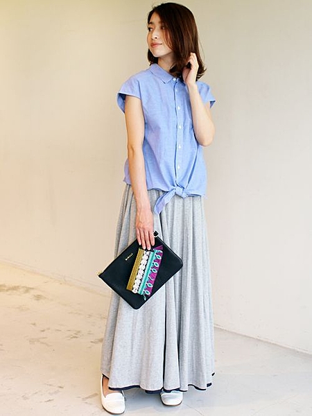 グレーのマキシスカートを履いてみましょう♪