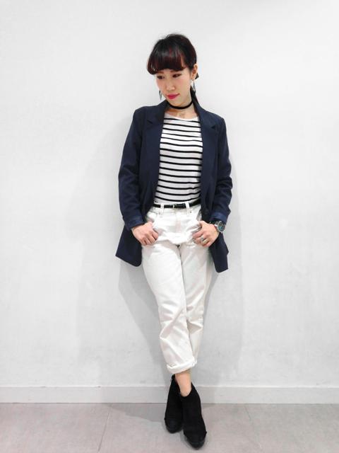 小物までモノトーンでまとめた、潔いコーデ。モードで洗練された雰囲気に、ジャケットは欠かせません。