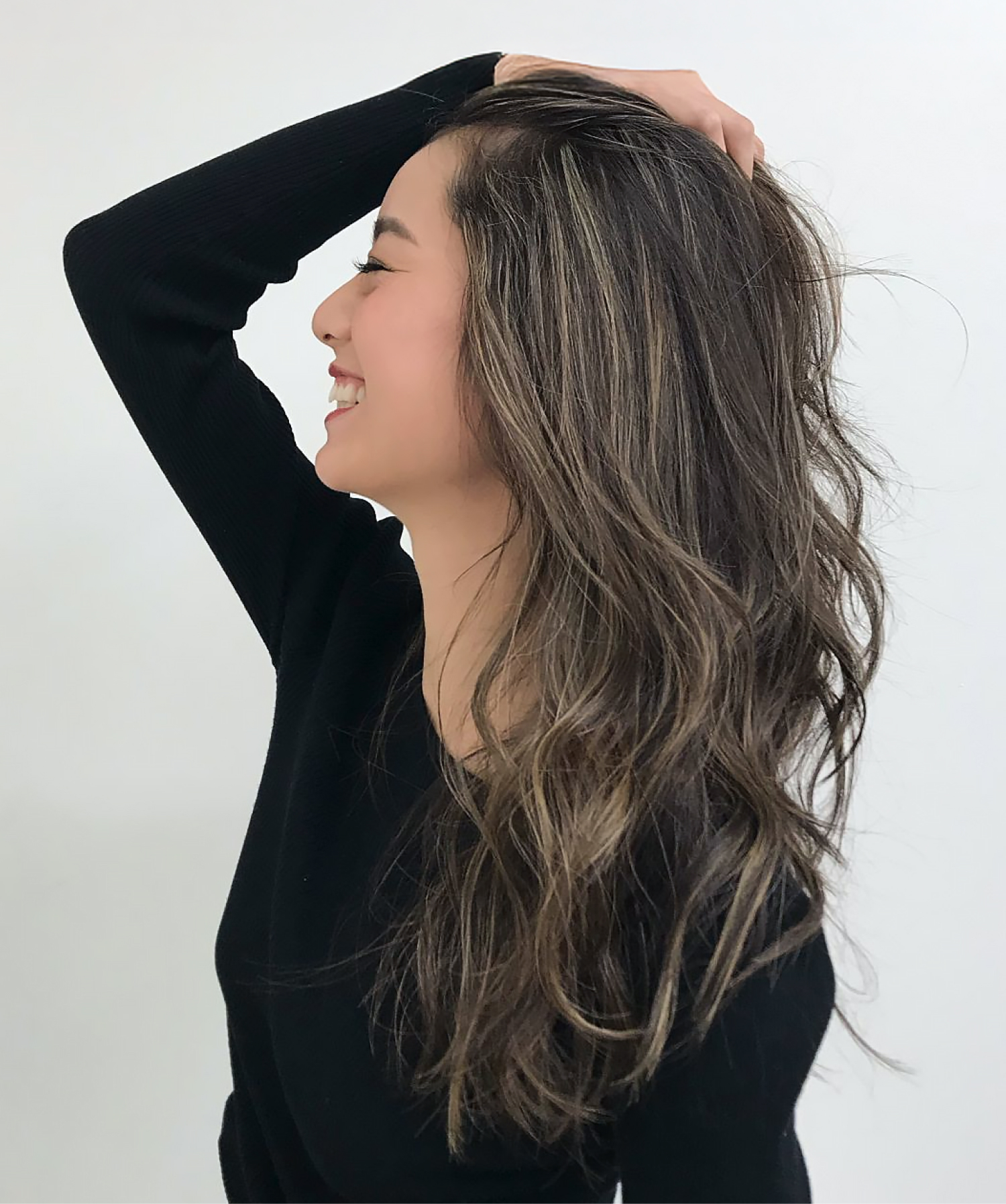 編み込みをしてから毛先をルーズにまとめて、リボンバレッタを留めた上品かつ華やかなアレンジ。