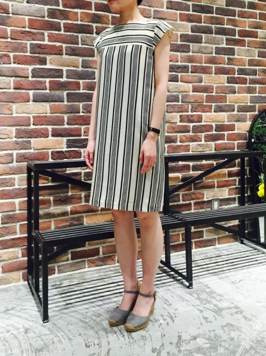 グレーやホワイトのストライプワンピースはシックで大人な夏の着こなしができます。