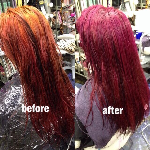 実際にセルフでカラーリングした方の画像です。こんなに綺麗にチェリーカラーになっちゃいます!